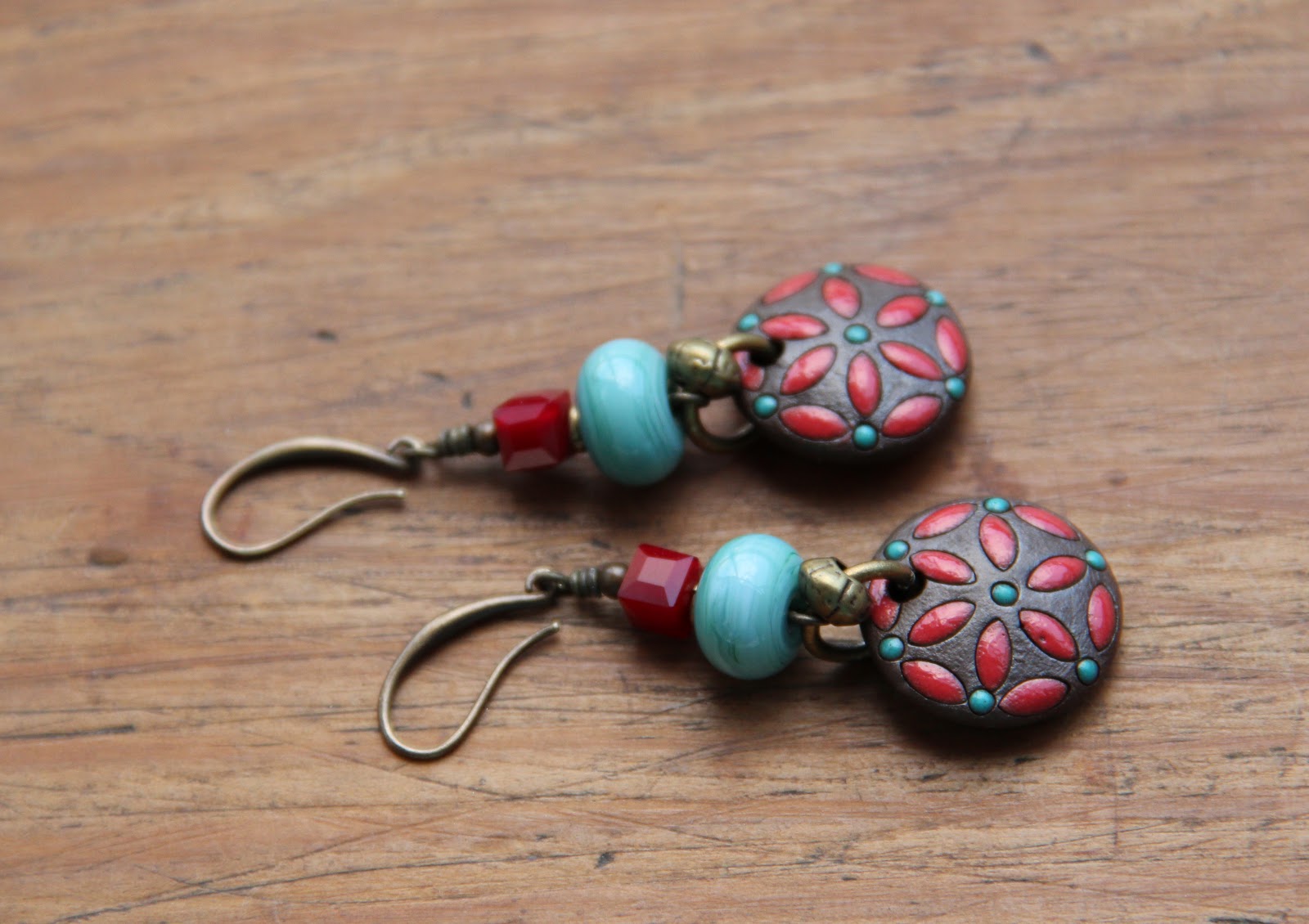 Red and turquoise, that's not new (I started a necklace earlier but it's still waiting for me to finish it).