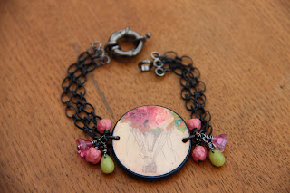 me voilà avec deux bracelets et une paire de boucles d'oreilles, d'inspiration romantique (cela devrait faire rire ceux qui me connaissent!) mais pas trop quand même...