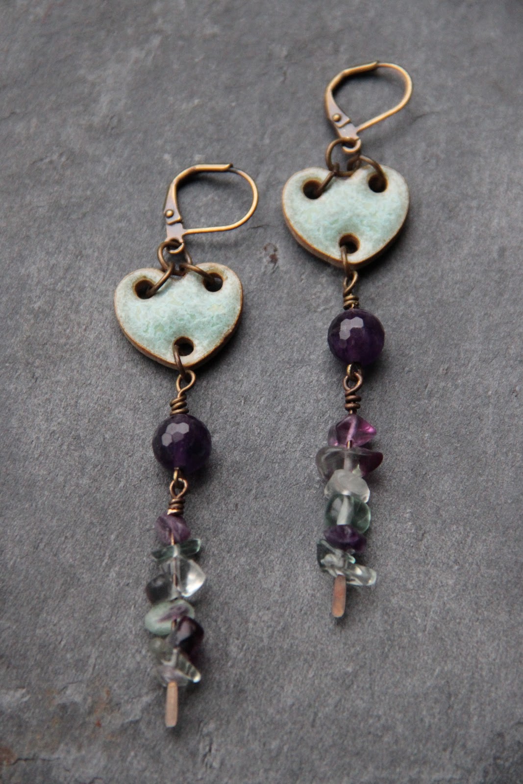 Des connecteurs en céramique de chez Elaine Ray d'un joli vert d'eau printanier depuis trop longtemps dans mon stock.