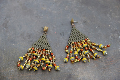 Scorched Earth pendants, glass beads and ear posts from the Curious Bead Shop, Japanese seed beads , cristals and ceramic beads.