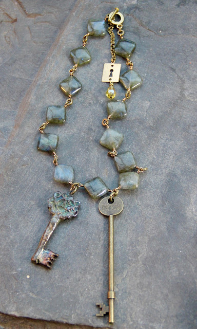 Keys and locks are at the heart of the novel so I used them in beads with one of my favorite stones, labradorite.